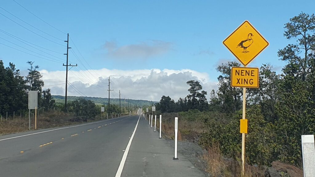 Je quitte la plage et rentre dans le Parc National du Volcan, biotope de prédilection de la bernache nēnē , espèce endémique. C’est l’animal/oiseau officiel de l’état.